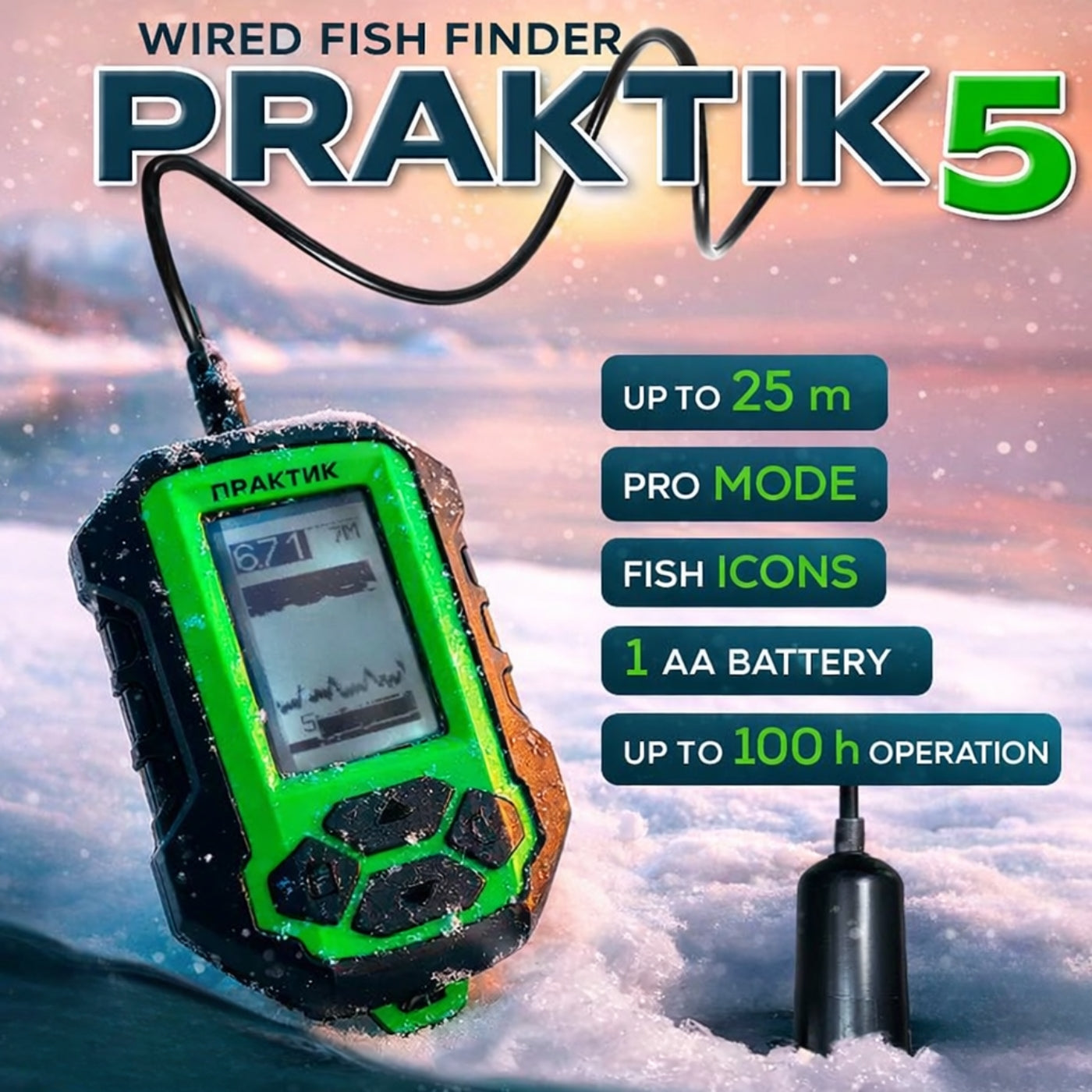 - Praktik 5 eholote (bloks ar kabeli un devēju)