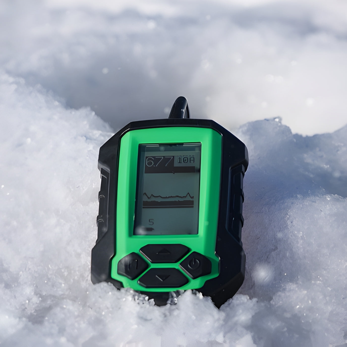 Zoom funkcija (2 m) palielina piegrunts zonu, attēlojot 2 metrus virs grunts, kas ir īpaši noderīgi precīzai ēsmas kontrolei.