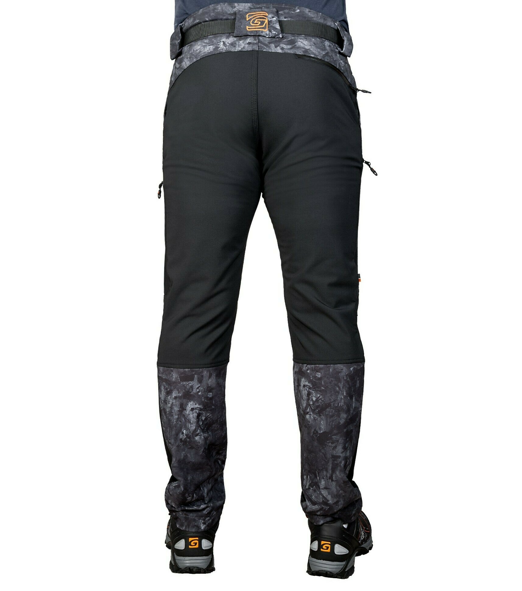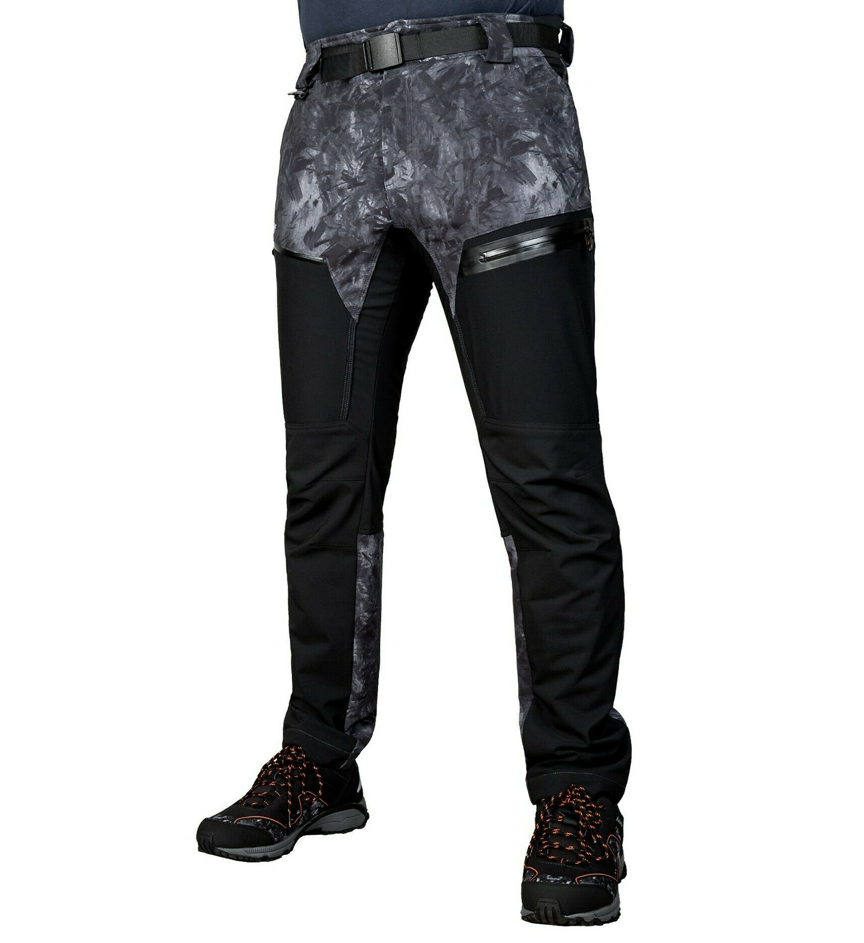 Trousers: 2 front pockets + 1 back pocket and 1 leg pocket with zippers