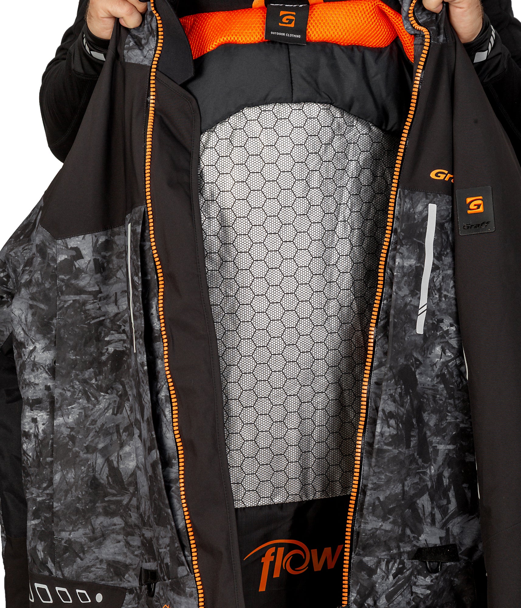 The FLOAT GUARD 215-O-B is an advanced buoyant fishing suit designed for active anglers fishing even in extreme conditions. It is dedicated to the autumn and winter season, especially during low temperatures. The BRATEX® membrane with enhanced parameters (waterproof rating 10,000 mm H2O / breathability 8000 g/m2/24 h) guarantees comfort and protection against rain, snow and wind, while effectively wicking away excess moisture. Additionally, the outer layer is finished with DRY CARE® coating, which increases resistance to dirt and enhances protection against moisture.