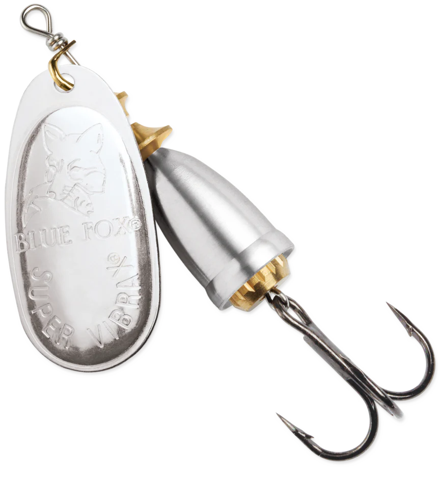 SKU:The iconic Vibrax Original serves as the foundation for a diverse assortment of spinners offered by Blue Fox, catering to the modern angler's techniques. With Vibrax Original's patented two-part body that effectively eliminates line twists, Blue Fox spinners stand out from the rest. Whether targeting slow-moving water prey like perch and chub or maneuvering through fast-flowing rivers for trout and salmon, this low-frequency spinner is sure to produce the necessary noise and vibration to entice a strike. A 45° mid-depth blade allows for a depth range of 0.6 – 1.2 meters, while the spinning brass gear and stainless steel shaft add durability. Available in raw brass, silver, or copper plating, as well as painted and printed finishes, and equipped with a VMC hook.